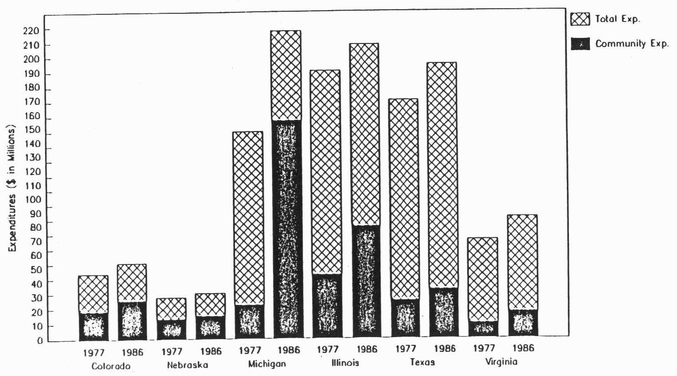 - EXHIBIT II-4: State Total MR/DD Expenditures and Community Expenditures: 1977-1986
