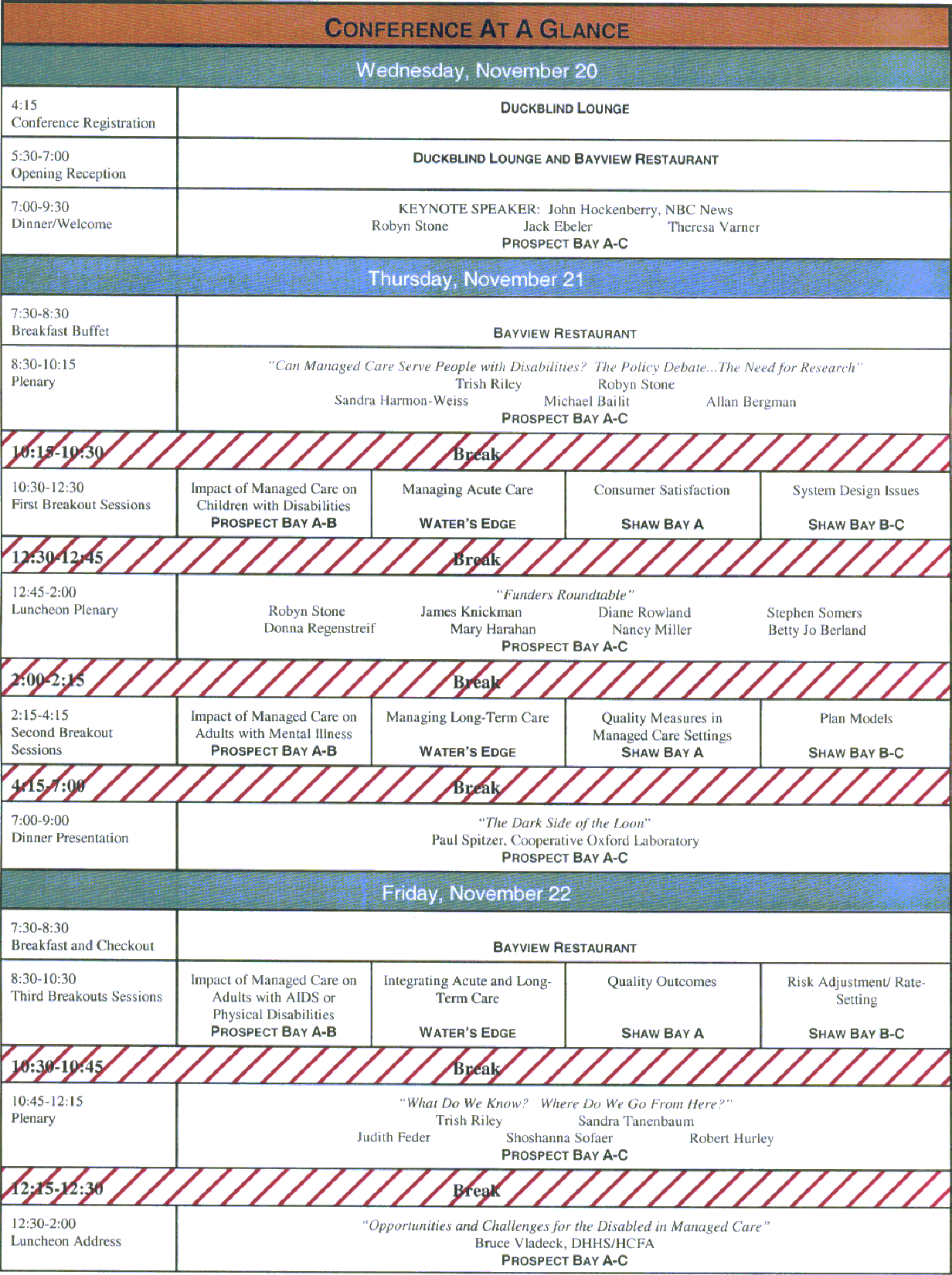 This package--distributed at a national conference held at the Harbourtowne Golf Resort and Conference Center, St. Michaels, Maryland on November 20-22, 1996--was prepared by the Office of Disability, Aging and Long-Term Care Policy with the U.S. Department of Health and Human Services (HHS). Additional funding for this conference was provided by the HHS Health Care Financing Administration and the American Association of Retired Persons. For additional information about the study, you may visit the DALTCP home page at http://aspe.hhs.gov/daltcp/home.htm or contact the ASPE Project Officer, Andreas Frank, at HHS/ASPE/DALTCP, Room 424E, H.H. Humphrey Building, 200 Independence Avenue, SW, Washington, DC 20201. His e-mail address is: Andreas.Frank@hhs.gov.