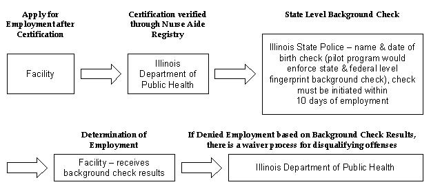 Statutes Authorizing Criminal Background Checks. Criminal background checks provide another avenue for screening potential long-term care employees. Two federal statutes enable health care providers to perform criminal background checks on prospective employees. Public law 105-277, Section 124 enables nursing facilities and home health care agencies to request fingerprint based national criminal history checks by the FBI for employees or job applicants seeking positions involving direct patient care. In addition, Public law 103-322 § 320928 enables federal criminal background checks to be performed on individuals employed in long-term care settings other than nursing facilities and home health agencies. This law allows for checks to be conducted on individuals who work for, own, or operate a business that provides care to the elderly or individuals with disabilities.