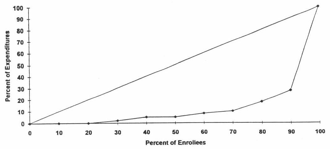As with most insured groups, a majority of children did not have expenditures nearly as great as the average. The median expenditure per substance exposed child was $465 over the two year study period, compared to a median expenditure of $240 per child for the control group. Related to this result, 10% of the children in the study cohort accounted for 73% of the total Medicaid expenditures for the substance exposed group. Similarly, 10% of the children in the comparison group accounted for 79% of that group's total Medicaid expenditures.