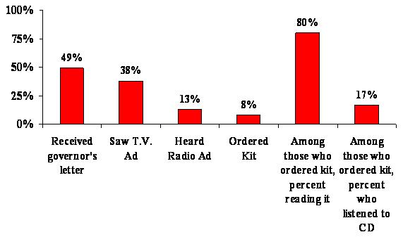 Our findings here are consistent with other research which shows that the number of touches or exposures to a message that an individual receives is positively related to their taking whatever action is directed in that message. Individuals with a higher score on the campaign exposure variable reported that they received more communications urging them to order the Planning Kit -- including mail, television and/or radio. This does not, however, tell us which type of media exposure was most important: television, radio, follow-up postcard, or initial Governors letter? It merely tells us that the more exposure to the message, the better.