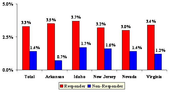 While response rates were highest in Virginia (9.1%), in all states, the response rate met or exceeded our baseline estimate of 5% which is considered an appropriate response rate for a social marketing campaign. These response rates are also significantly higher than comparable private sector direct mail campaigns on this topic (which might see responses of 0.1%-2.0%).