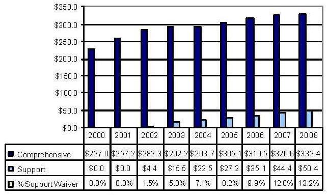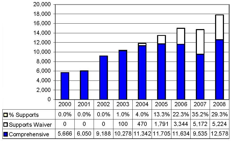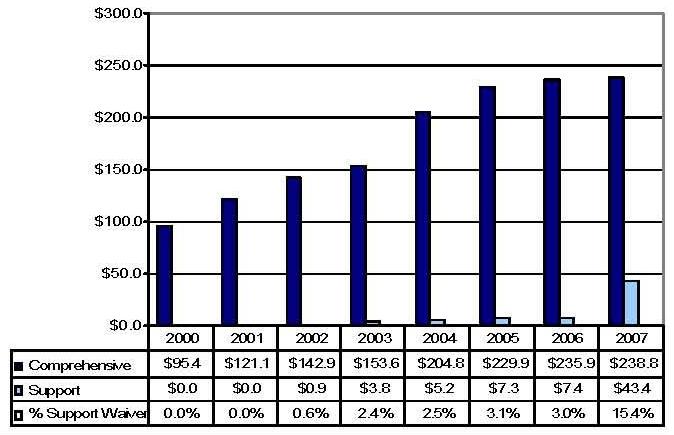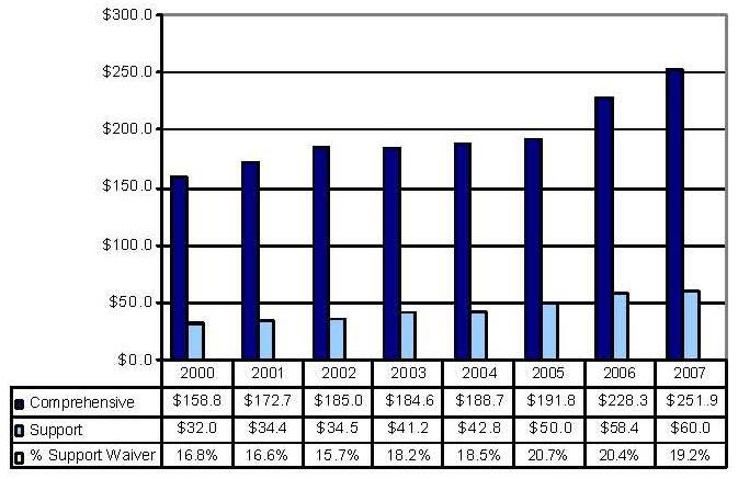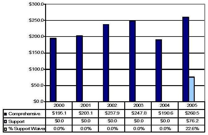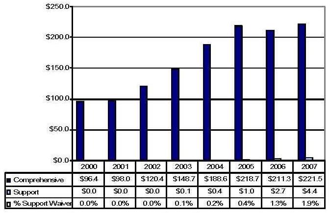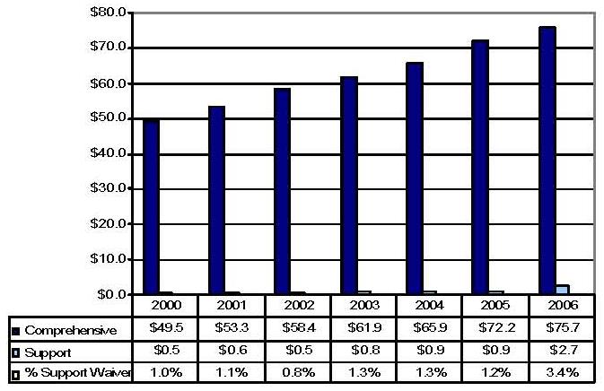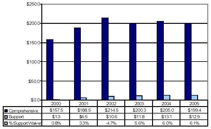 | * The comprehensive waiver in 2005 is not comparable to the prior five years due to the reconfiguration of the predecessor CAP waiver. | ||||||