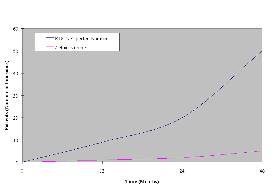 Uncertain market penetration was another reason for the skepticism in industry. Interviewees stressed that potential patient compliance problems and limited access to patients made them uncertain about the true market size for cocaine treatment. Representatives of two companies noted that most publicly-funded treatment centers are managed by non-physicians who tend to oppose the use of drugs to treat substance abuse, which such staff regard as a "behavioral" condition, thereby further restricting the potential sale of these drugs.