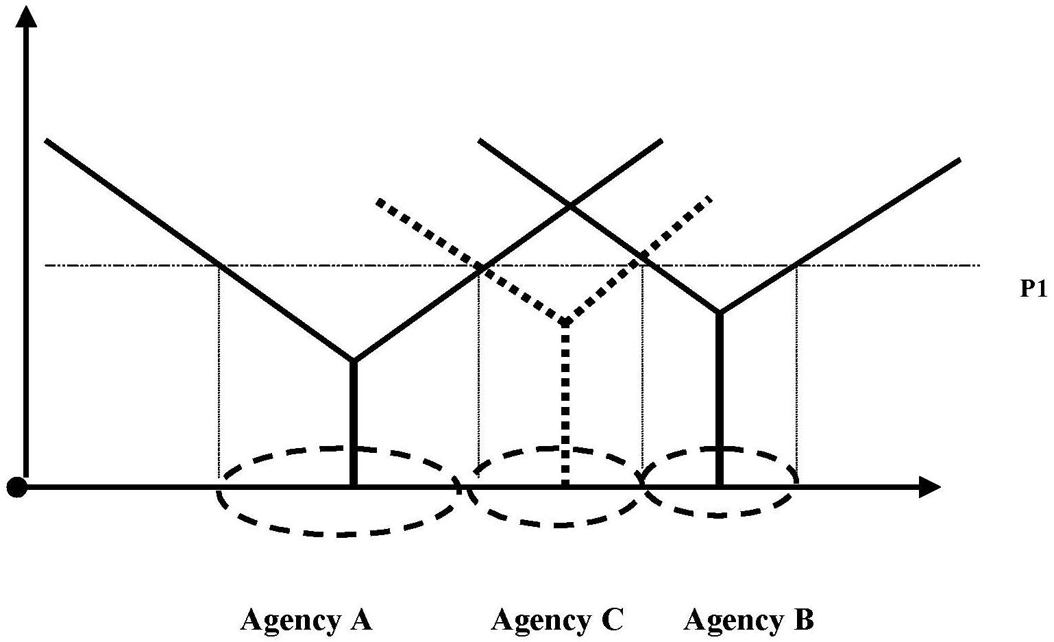 - FIGURE 5.4: New Market Entry by Agency C After Service Area Contractions by Agencies A & B