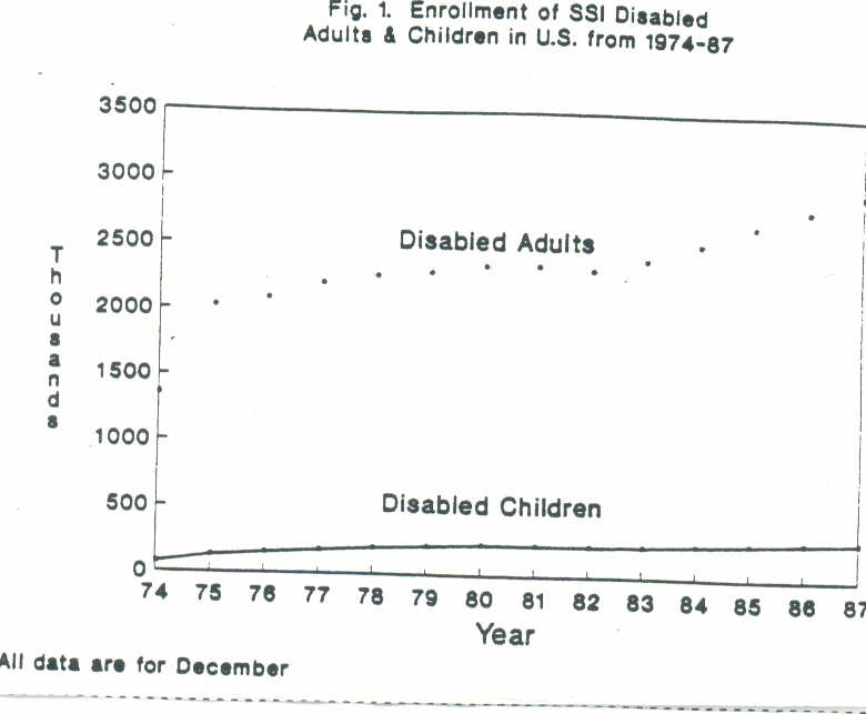 A final study objective was to assess whether study data might provide any insights into the impact of the Supreme Court's Zebley decision (February 20, 1990) on the Medicaid program. As mentioned earlier, the court ruled that the Social Security Administration (SSA) had been using a harsher disability test for children applying to the SSI program than had been intended by Congress or used for adults. Although individualized assessments of ability to work were used (when necessary) for adult SSI disability determinations, no comparable individualized functional assessments were used for children. Instead, children could qualify for SSI only if they suffered from a condition included in or equal to a specific listing of impairments developed by SSA.