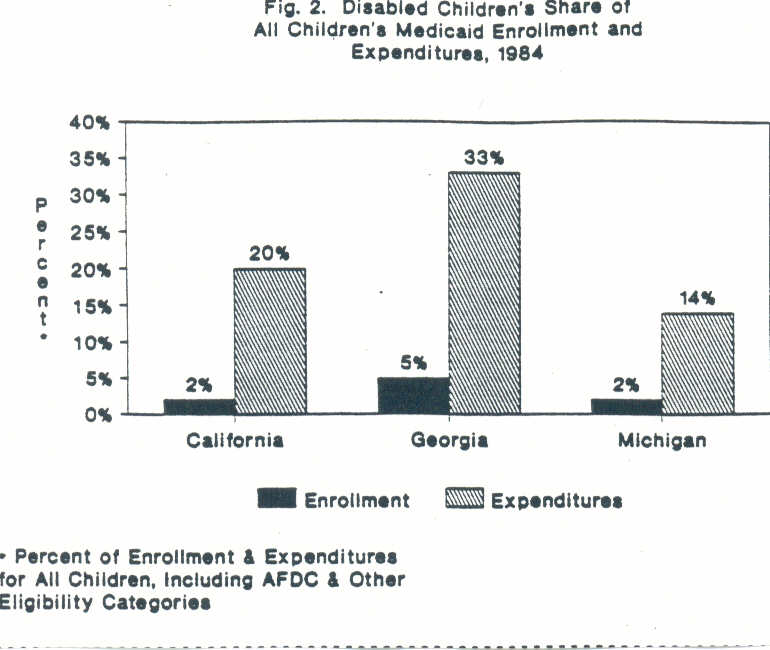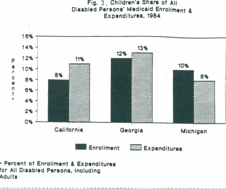 This paper presents available data on the Medicaid experience of disabled children, with disabled children defined as those who met the (pre-Zebley) disability test of SSI. The study population includes disabled children eligible for Medicaid and SSI cash assistance, as well as other optional groups of children who meet the disability test of SSI, but only qualify for Medicaid (not SSI cash assistance). The analysis focuses on the Medicaid patterns of disabled children in California, Georgia and Michigan, using Tape-to-Tape data for 1984. This is the most recent readily available data on this Medicaid population group. The research questions addressed by this study include: