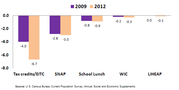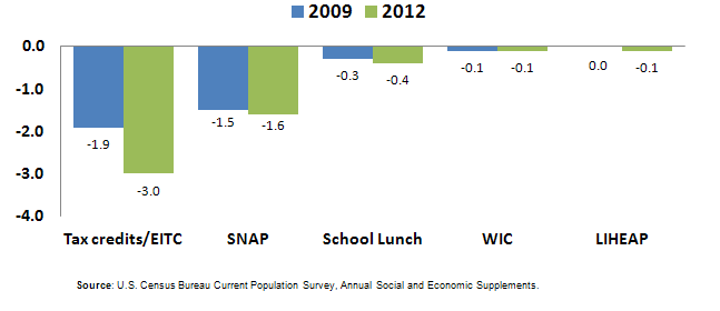 - The School Lunch program, the Women, Infants, and Children (WIC) program, and the Low Income Home Energy Assistance Program (LIHEAP) also reduced poverty levels in 2012 but to a comparatively less degree than refundable tax credits and SNAP.