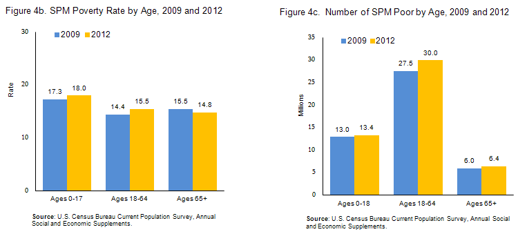 | Figure 4c. Number of SPM Poor by Age (in millions), 2009 and 2012 | ||||||||