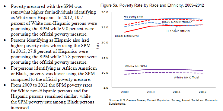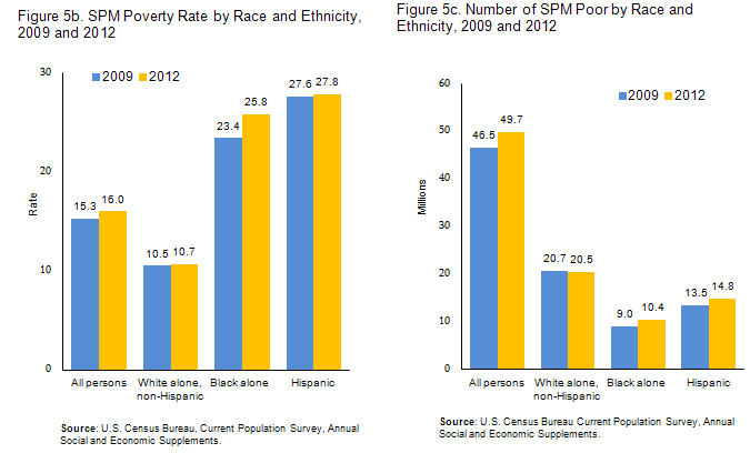 | Figure 5b. SPM Poverty Rate by Race and Ethnicity, 2009 and 2012 | ||||||||