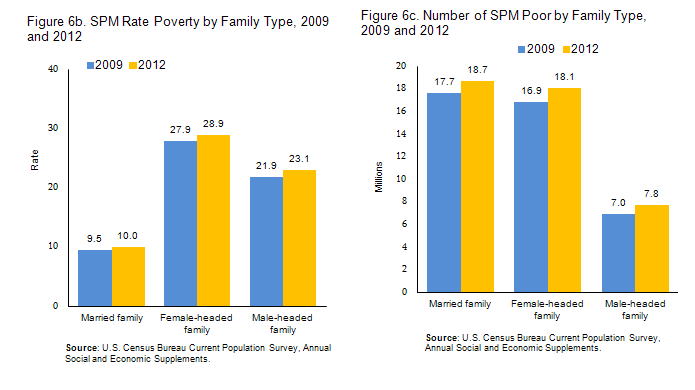 | Figure 6b. SPM Poverty Rate by Family Type, 2009 and 2012 | |||||||||