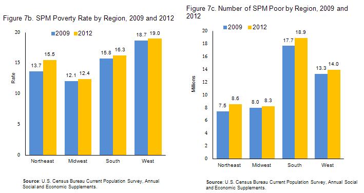 | Figure 7b. SPM Poverty Rate by Region, 2009 and 2012 | |||||||||