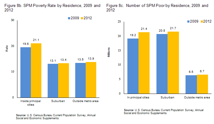 | Figure 8b. SPM Poverty Rate by Residence, 2009 and 2012 | ||||||||