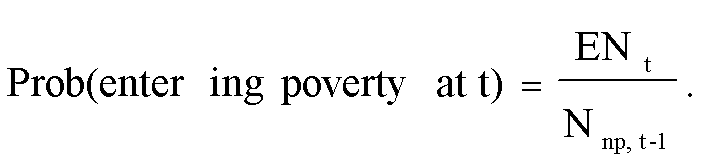 Our framework for examining what events increase individuals' likelihood of entering and exiting poverty (question 2) allows us to easily calculate how the probability (i.e., the likelihood) of entering and exiting poverty is affected by different events. We also examine how the probabilities have changed over time and the extent to which they differ for long and short spells of poverty.