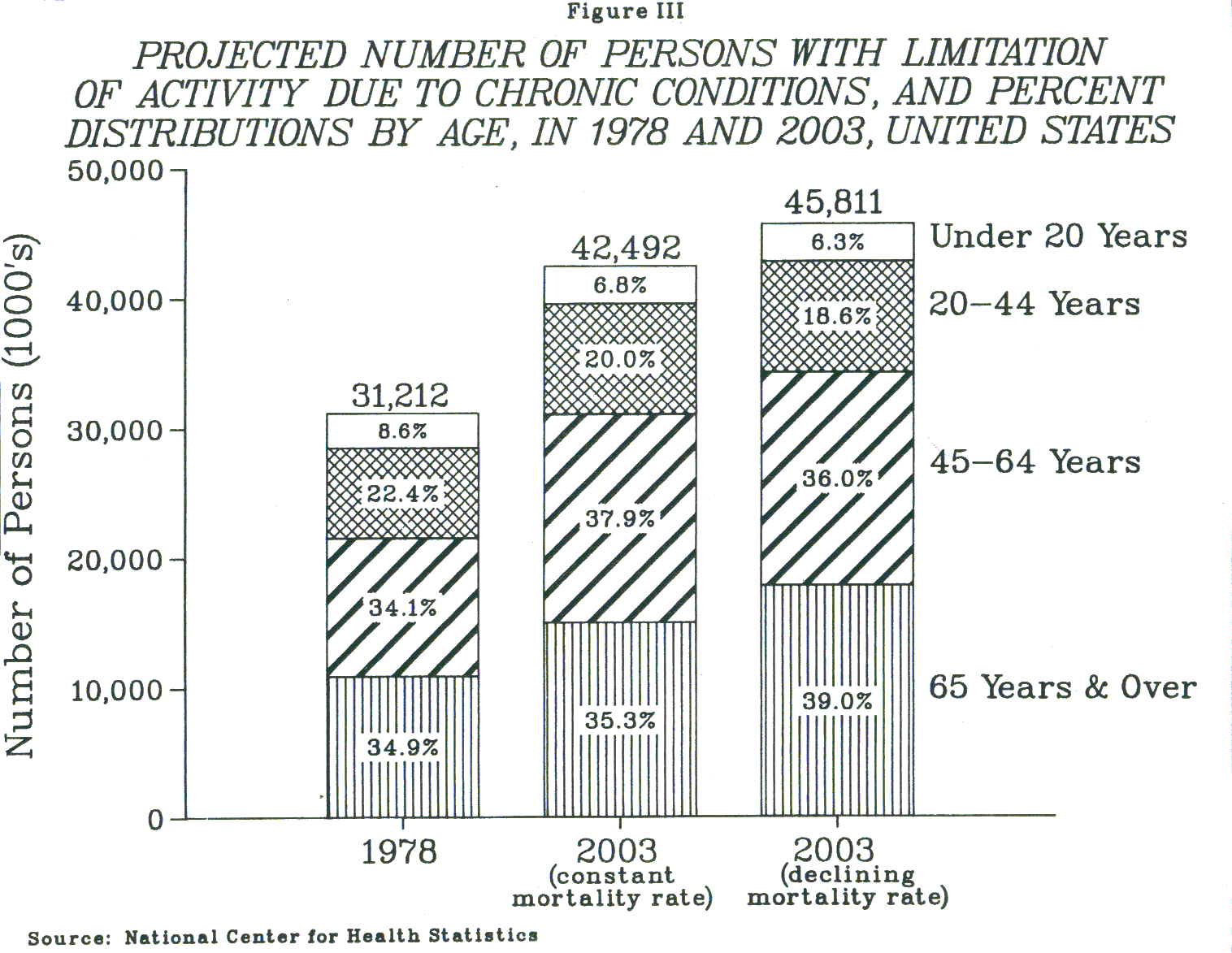 - FIGURE III: Projected Number of Persons with Limitation of Activity due to Chronic Conditions, and Percent Distributions by Age, in 1978 and 2003, United States