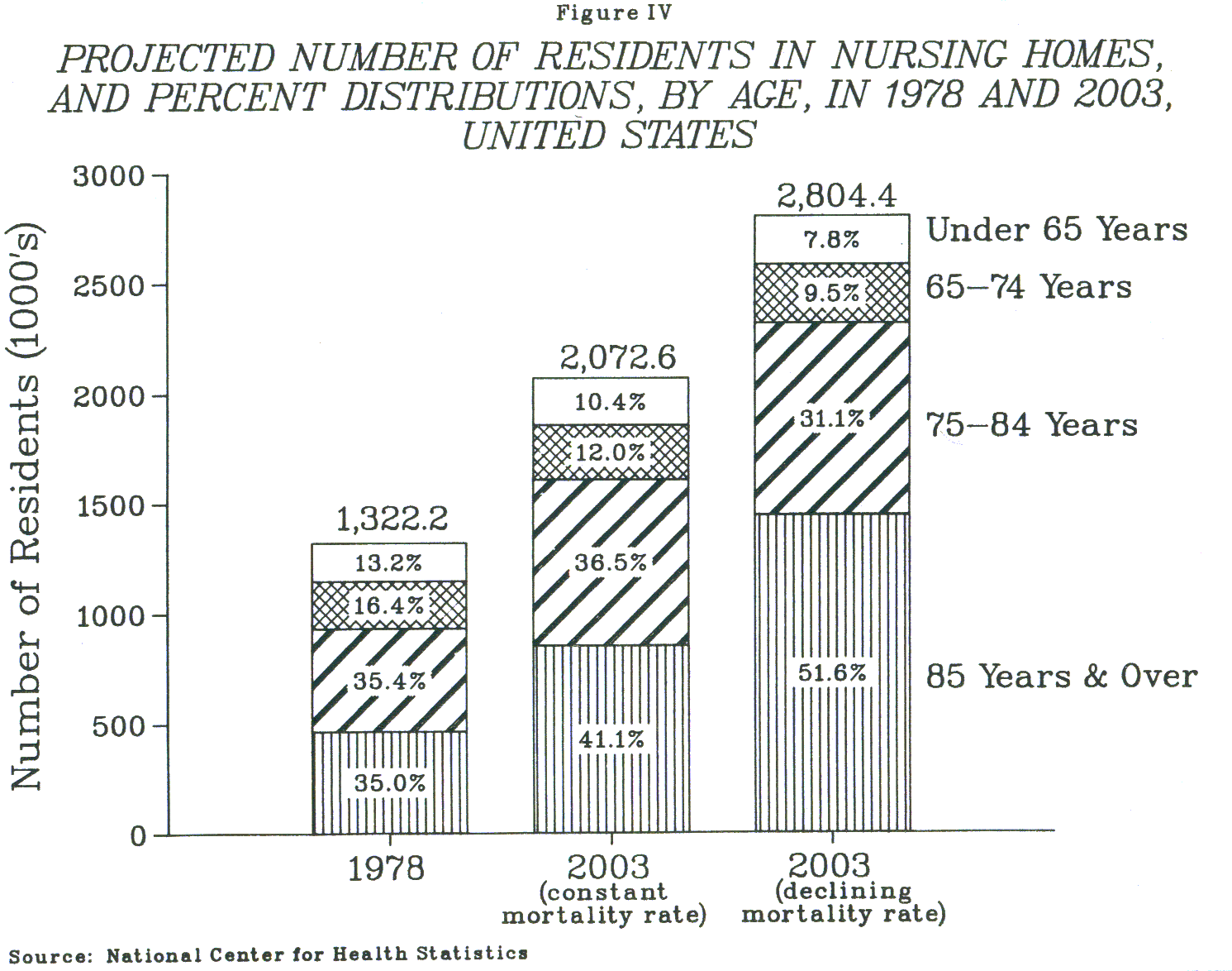- FIGURE IV: Projected Number of Residents in Nursing Homes, and Percent Distribution, by Age, in 1978 and 2003, United States